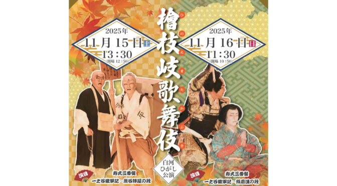 白河市東文化センター 主催 「檜枝岐歌舞伎 白河ひがし公演」にて、野出島の手打ちそばを出店いたします。
